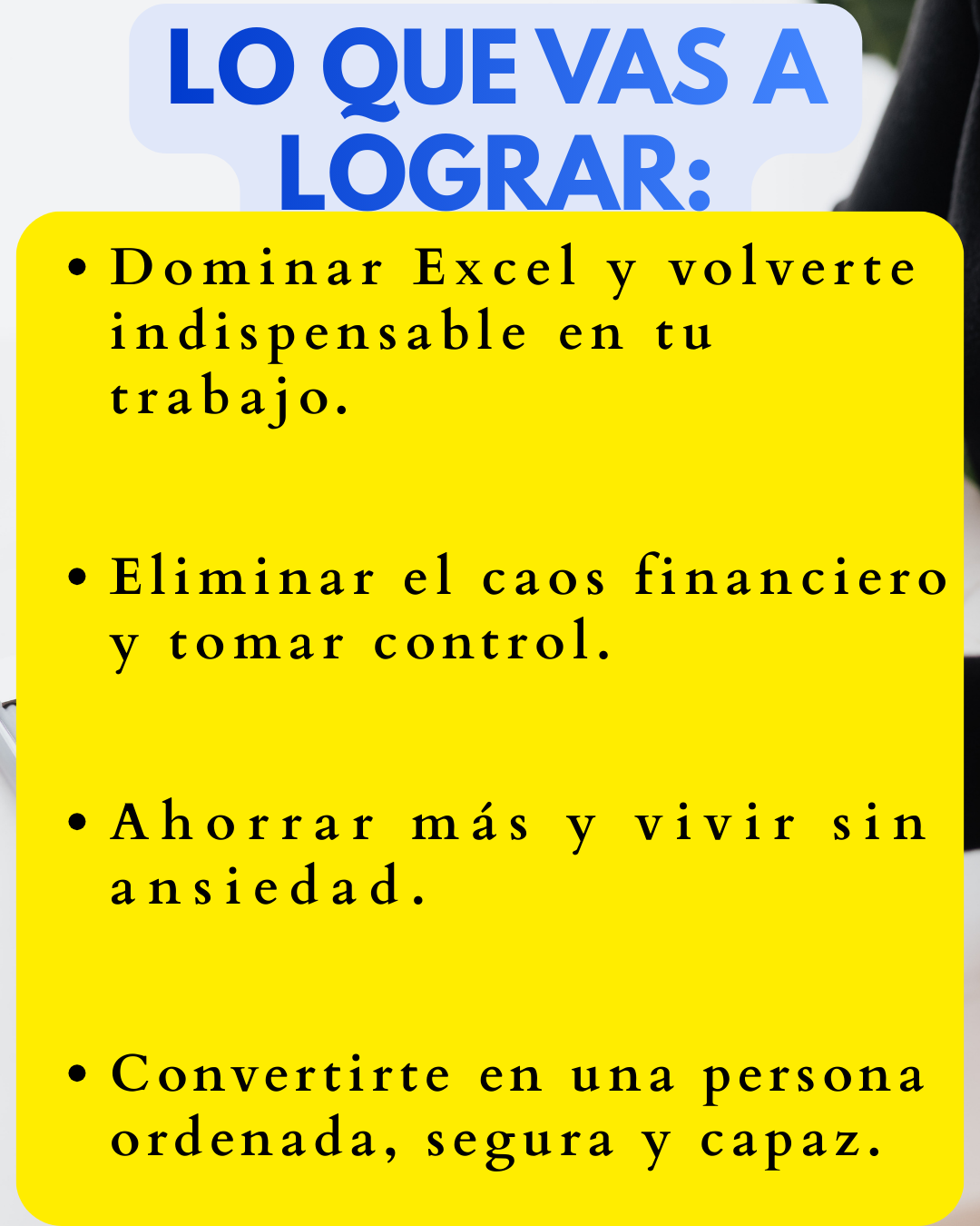 Podrás mejorar tu capacidad de análisis, optimizar tus reportes, crear modelos financieros más sólidos, automatizar tareas, presentar información de forma profesional y tomar decisiones más fundamentadas basadas en datos claros y bien estructurados.